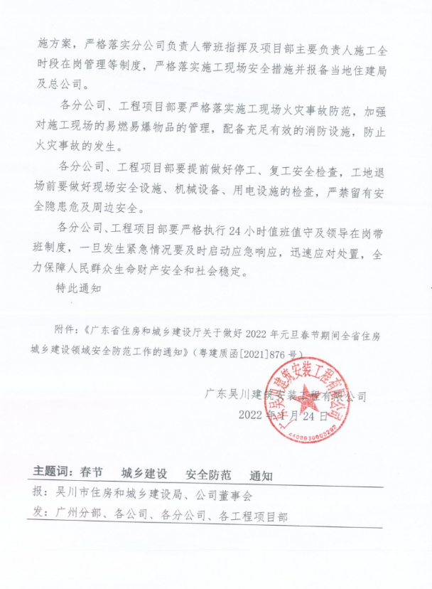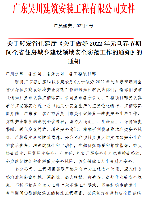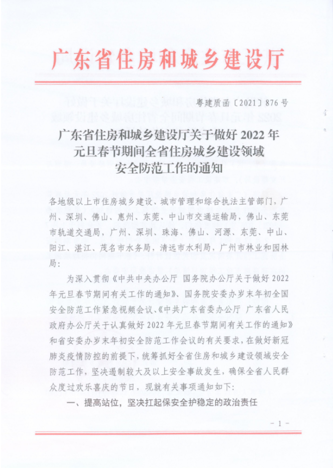 關(guān)于轉(zhuǎn)發(fā)省住建廳《關(guān)于做好2022年元旦春節(jié)期間全省住房城鄉(xiāng)建設(shè)領(lǐng)域安全防范工作的通知》的通知