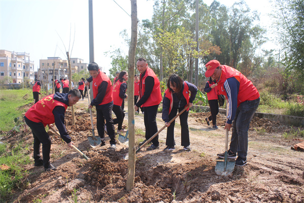 為深入貫徹落實(shí)習(xí)近平生態(tài)文明思想,進(jìn)一步發(fā)揮基層黨組織戰(zhàn)斗堡壘作用和廣大黨員先鋒模范作用,推動(dòng)鄉(xiāng)村綠化工作。2024年3月12日上午,吳川市國(guó)有資產(chǎn)經(jīng)營(yíng)公司黨委、吳川市住房和城鄉(xiāng)建設(shè)局黨總支部和我司黨總支部到蘭石鎮(zhèn)名利村開展“黨建引領(lǐng)聯(lián)建共建,黨群攜手愛綠植綠”主題黨日活動(dòng)。公司黨總支領(lǐng)導(dǎo)班子成員、黨員及入黨積極分子共同參與了植樹活動(dòng)。